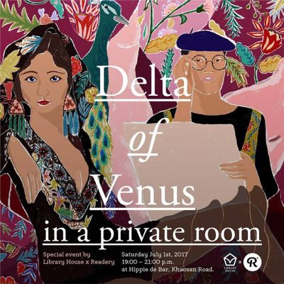 สำนักพิมพ์ไลบรารี่ เฮ้าส์ และ ร้านหนังสือออนไลน์ Readery จับมือกันจัดกิจกรรม DELTA OF VENUS IN A PRIVATE ROOM จุดไฟความวาบหวามให้ค่ำคืนวันเสาร์ที่ 1 กรกฎาคม 2017 เวลา 19:00 น. ในพื้นที่ส่วนตัวสุดเอ็กซ์คลูซีฟเพื่อรับรองนักอ่านและเเขกคนพิเศษที่ร้านฮิปปี้ เดอ บาร์ ถนนข้าวสาร